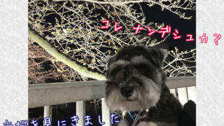 ミニチュアシュナウザーのワンコ達、夜桜を見にいく