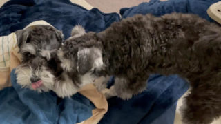ミニチュアシュナウザーのベラさん、寝坊がち