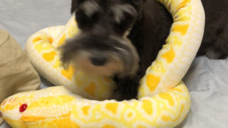 ミニチュアシュナウザーのベラさん、そんな寝かたでいいの?