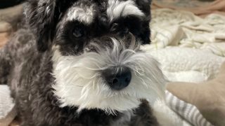 ミニチュアシュナウザーのベラさん、ゴシュジンサマ観察中