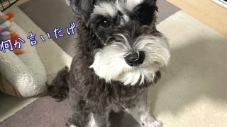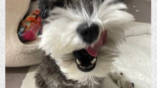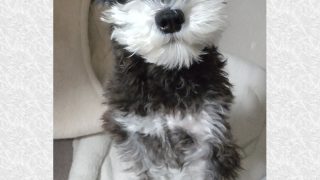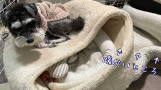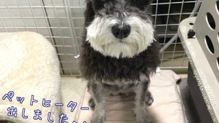 ミニチュアシュナウザーのベラさん、ゆず湯にビビル