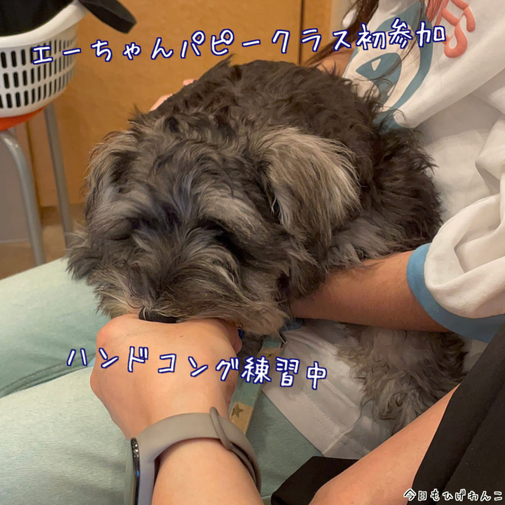 しつけでよく使うハンドコングの練習から。エーちゃんはまだ柔らかゴハンがメインですが、オヤツとしてあげるときにはカリカリの状態であげているのでとりあえず問題なし。