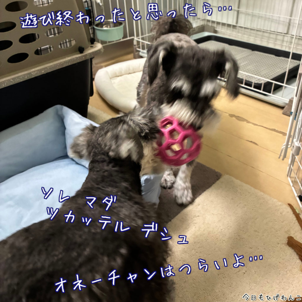 ベラさん、エーちゃんとオモチャの取り合いはあまりせずに、すぐ譲ってあげちゃうタイプ。