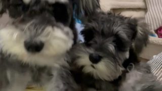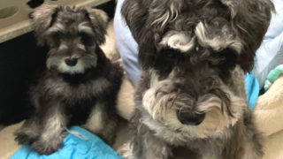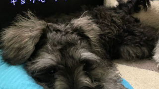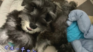 ミニチュアシュナウザーのエーちゃん、横着な遊び方