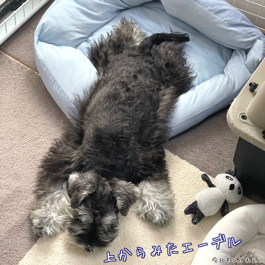 ぐでぐでワンコズ、上から見るか、横から見るか。とりあえずエーデル横からみた図がこちら。