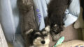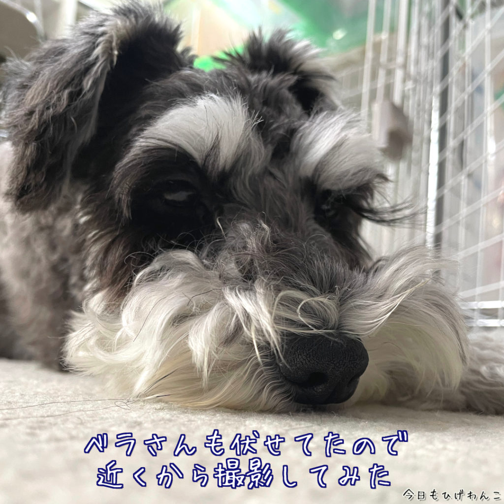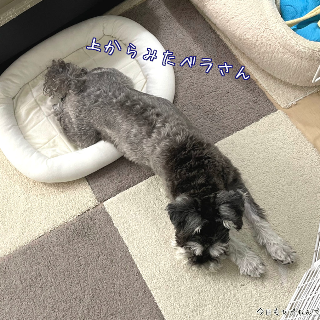 布団のへりもなんのその。パピーカットの影響で、見事な黒モップ状態です。