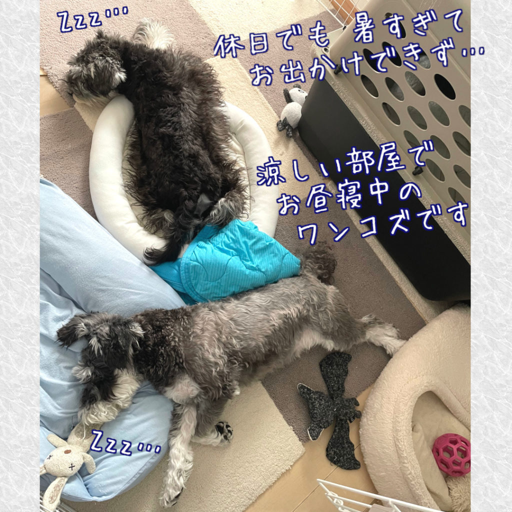 ワンコズ、気温40℃でお出かけできず… 人目線今日は40℃!! X Facebook はてブ LINE コピー 2025.08.30 ワンコズ、今日は外が高温過ぎた・・・。スマートスピーカーに表示されていた温度は40℃・・・。 こんな日は外出を避けて家で休むに限ります。 相変わらずオモチャとっ散らかし過ぎてるワンコズです。 すやすやワンコズ可愛いね。 ↓ブログ村クリックお願いします↓ ↓YouTube始めました↓ YouTube ↓Instagram↓ instagram ↓Twitter↓ 今日は40℃⁉️😎こんな日は涼しい室内でお昼寝に限ります🐶🐶💤#ミニチュアシュナウザー#子犬#多頭飼い#地球温暖化 #四十度https://t.co/Zkmyvsy2gR pic.twitter.com/dTwadpweqo— higewanko (@higewanko0325) August 30, 2025