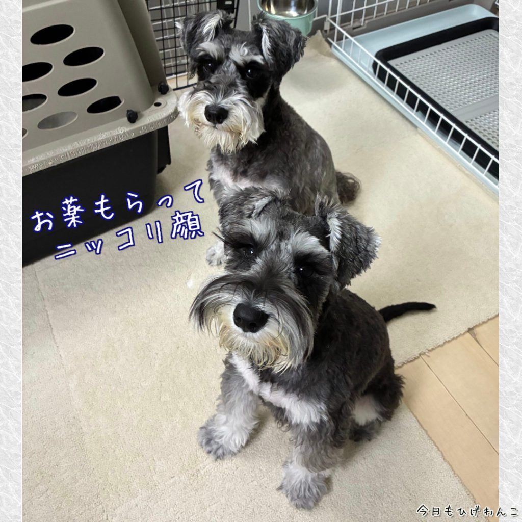 人目線ワンコズ、大好きなお薬の日です。