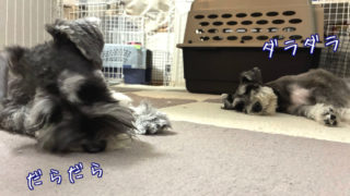ミニチュアシュナウザーのワンコズ、そろってダラダラ