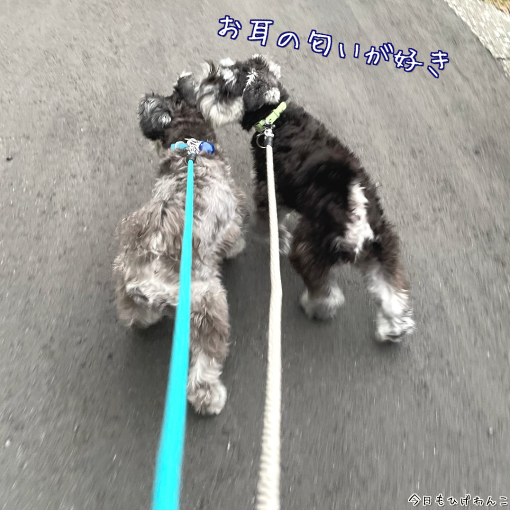 おさんぽ中でもチョイチョイお耳の匂いを嗅ぎに行ってはいなされてます。