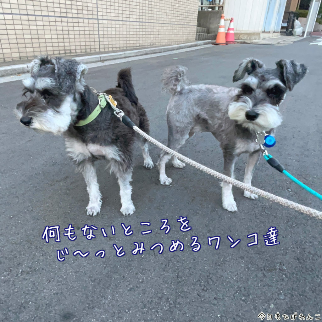 ワンコ達、オサンポの最中に、何もないし、誰ももいない方向をじーっと見つめていることが時々ある。
