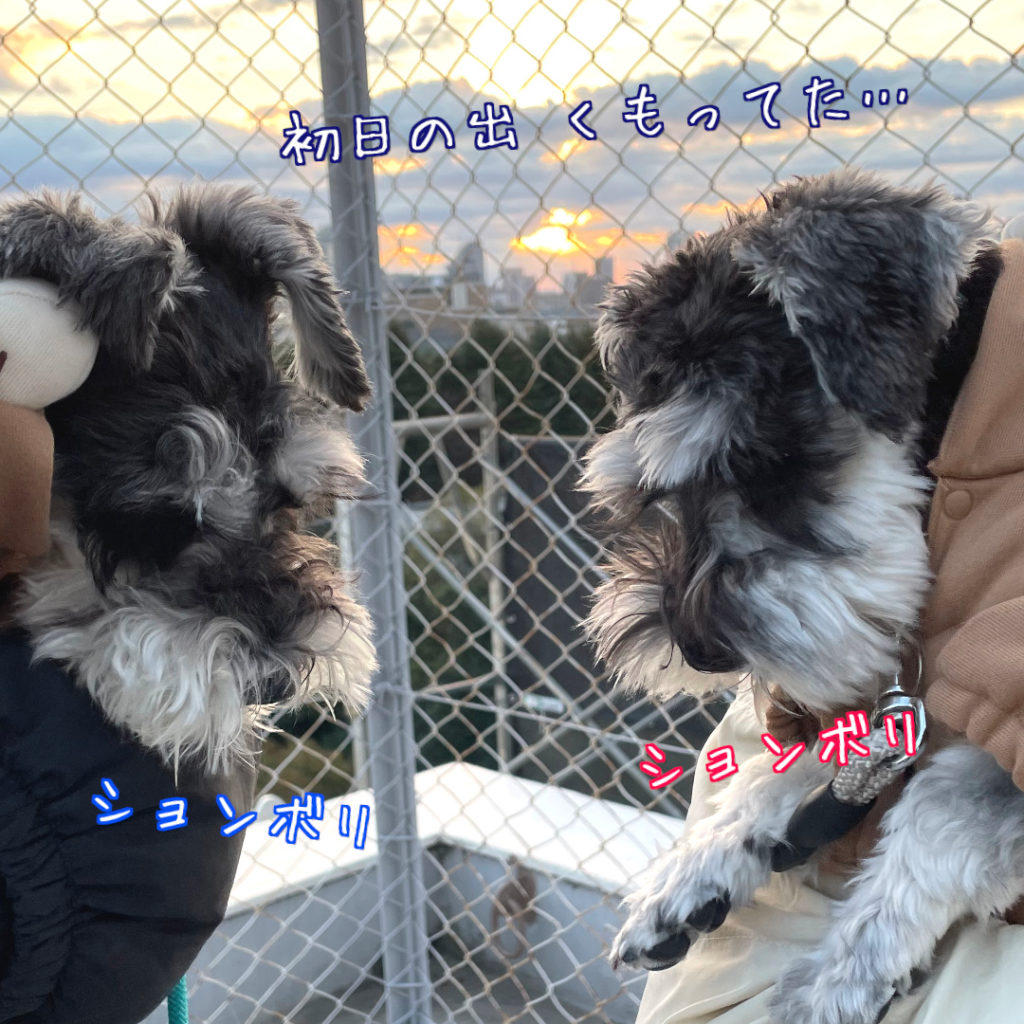 ワンコズ、明けましておめでとうございます 人目線HappyNyewYear2026 X Facebook はてブ LINE コピー 2026.01.01 明けましておめでとうございます。ワンコ達共々、2026年もよろしくお願いします。 頑張ってオスワリできました。 今年の初日の出は天気に恵まれず、雲の合間からちょっぴり見える程度でした。残念・・・。 あけおめワンコ達可愛いね。 ↓ブログ村クリックお願いします↓ ↓YouTube始めました↓ YouTube ↓Instagram↓ instagram ↓Twitter↓ 明けましておめでとうございます🌅今年もよろしくお願いします🐶🐶🙂#ミニチュアシュナウザー#多頭飼い#元旦#お正月#初日の出 https://t.co/a0x2M0OeoM pic.twitter.com/esaZIE2wmQ— higewanko (@higewanko0325) January 1, 2026