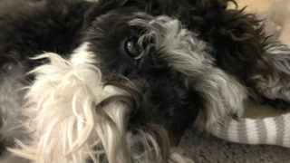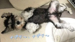 ミニチュアシュナウザーのベラさん、ふて寝する