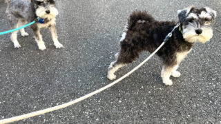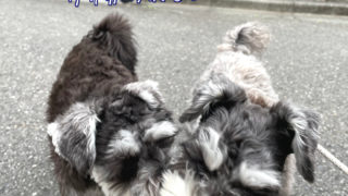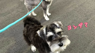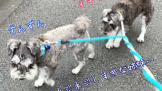 ミニチュアシュナウザーのワンコズ、もたもたしてると圧をかけてくる