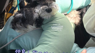 人目線 ワンコズ、お風呂の後は微妙に目を合わせない